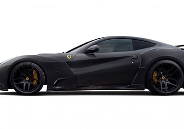 The Ferrari F12 Berlinetta. The 6.3-liter 12-cylinder Stage 1 increases power output to 770 hp /531 lb.ft torque, Stage 2 ECU Tune increases to 790 hp /550 lb.ft top speed to 350 km/h.